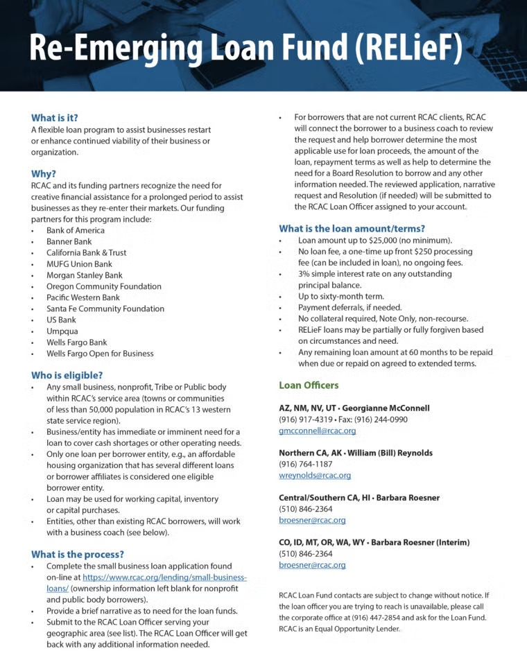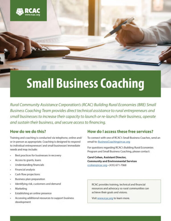 RCAC offers coaching for small businesses who are looking to improve their business strategies, projections and marketing skills. They are looking for tribal entities who have a business idea and would like technical assistance to create economic opportunities for their community.